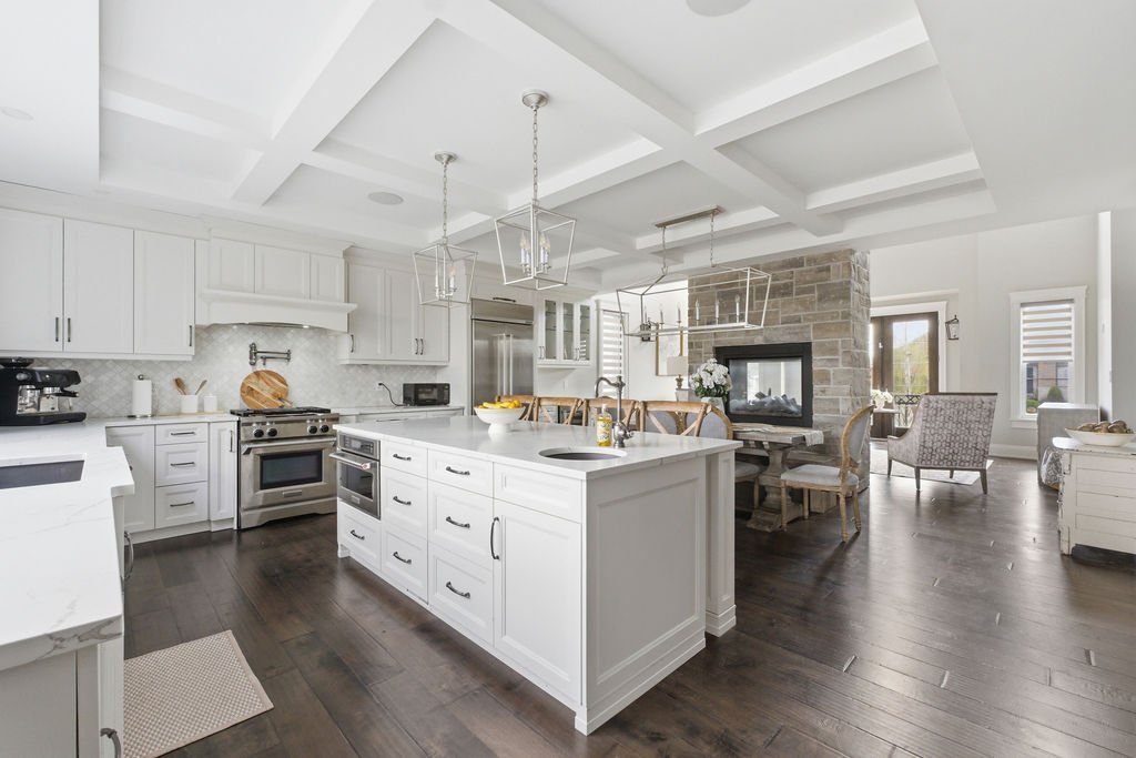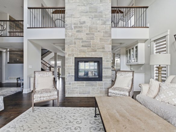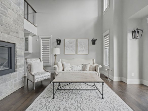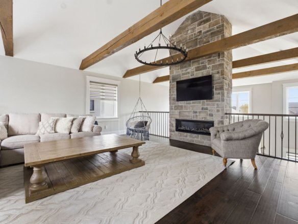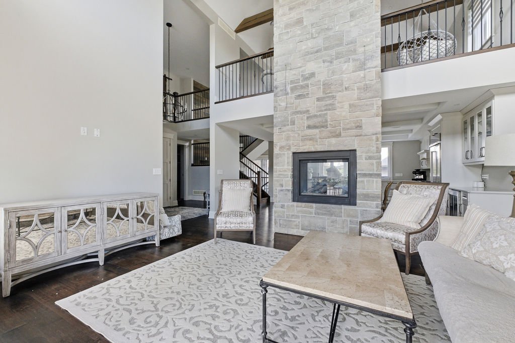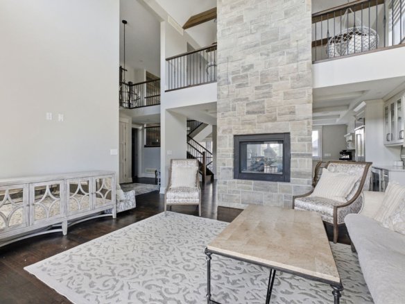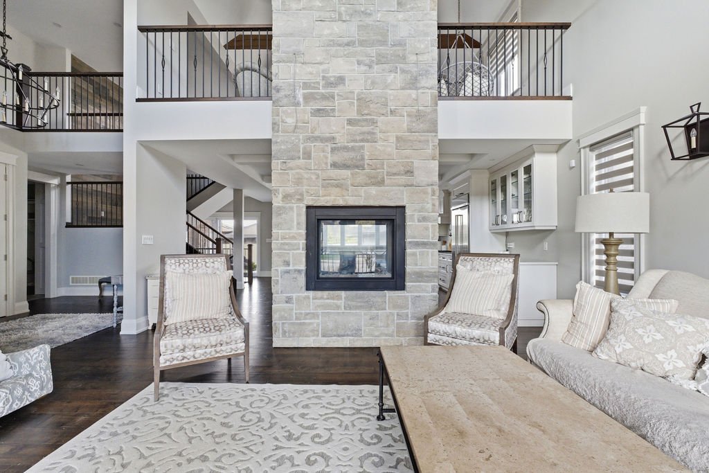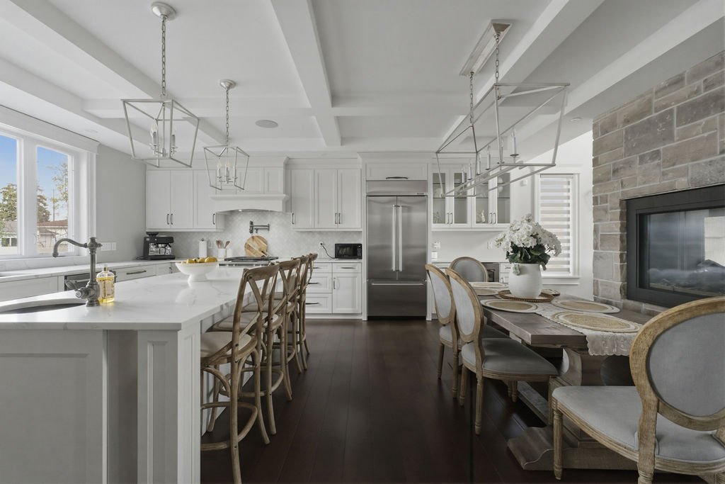 Custom built in 2018, this exceptional two-storey in Naccarato Estates is like no other, offering approx. 3,500 sq ft above grade (MPAC) with 6 beds and 6 baths. A grand entry with soaring ceilings leads into expansive, well-designed living spaces, highlighted by a floor-to-ceiling stone two-way fireplace connecting the living room and custom kitchen. The main floor hosts a primary suite and powder room. Upstairs features a loft-style living area, office space, 3 bedrooms, 2 full baths, and laundry.