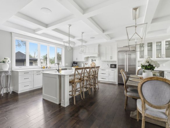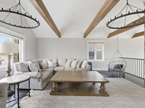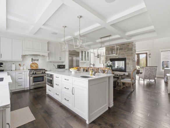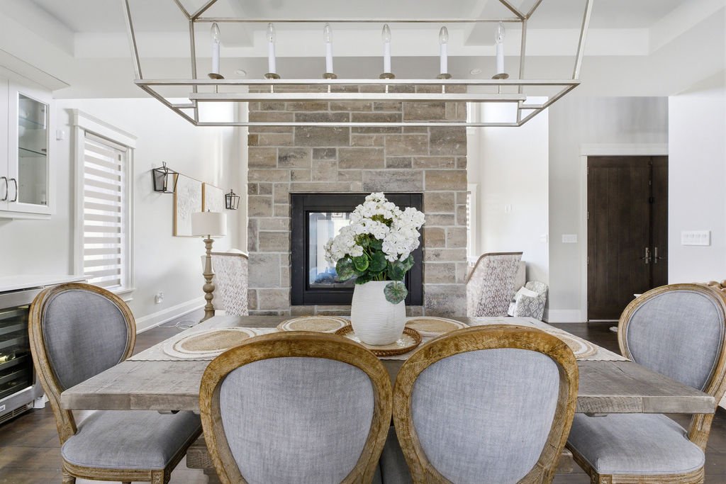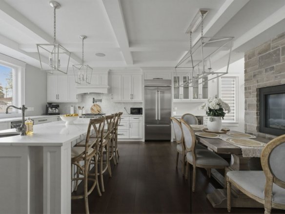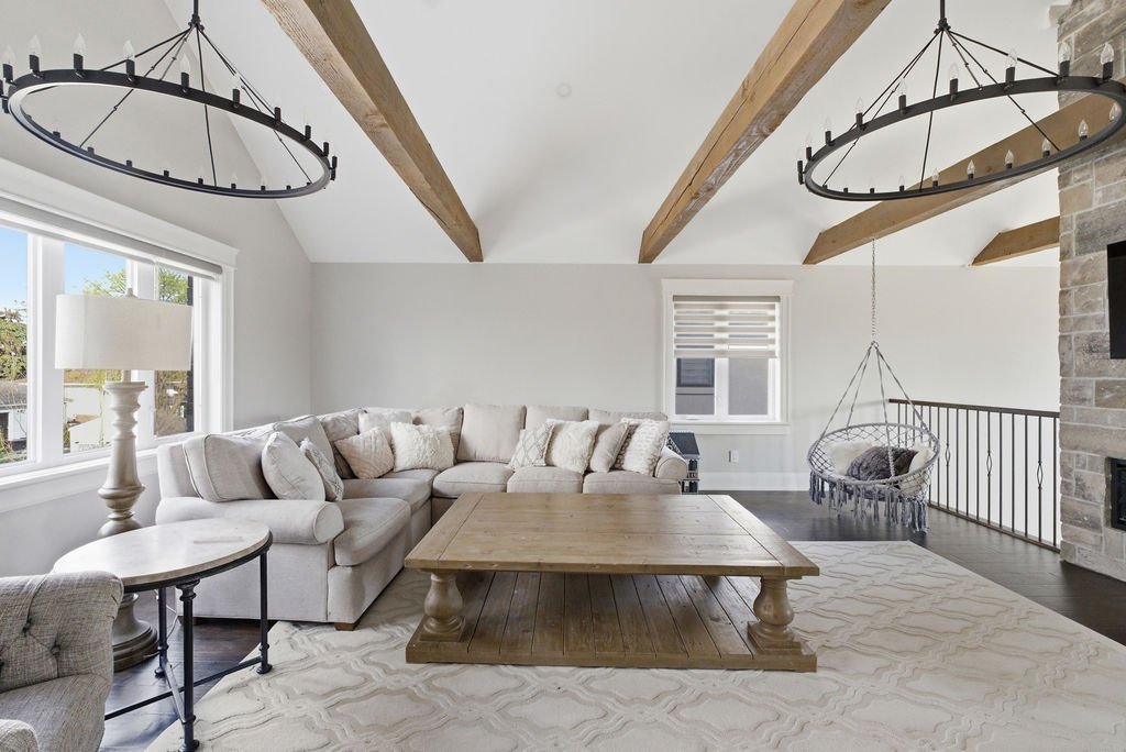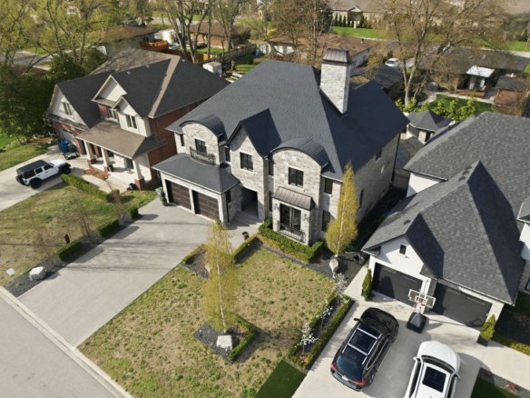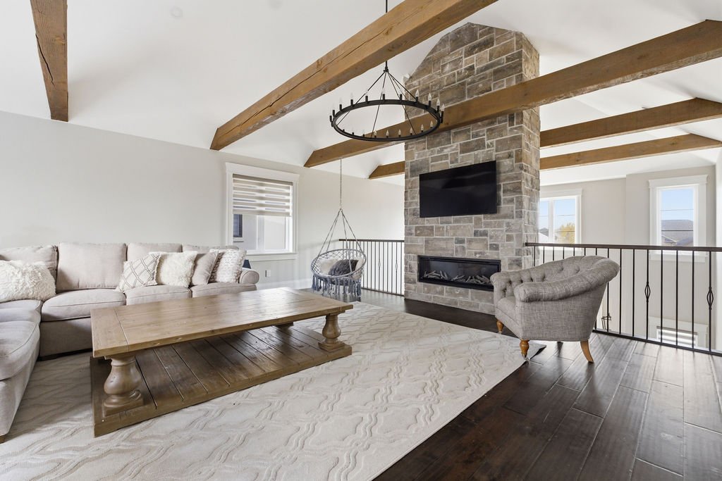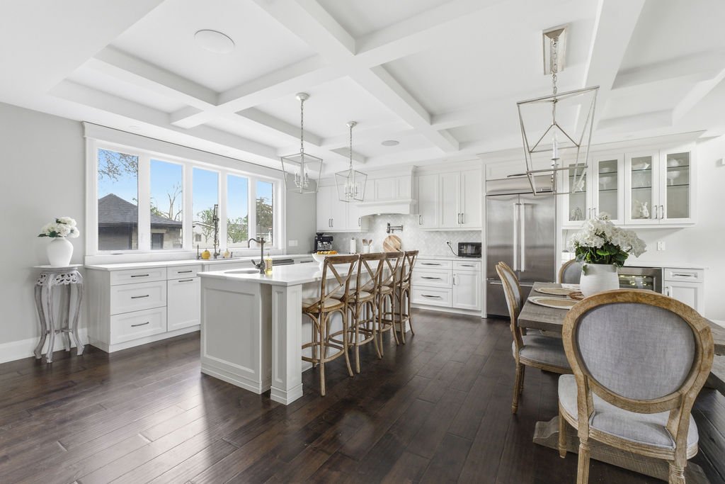 Custom built in 2018, this exceptional two-storey in Naccarato Estates is like no other, offering approx. 3,500 sq ft above grade (MPAC) with 6 beds and 6 baths. A grand entry with soaring ceilings leads into expansive, well-designed living spaces, highlighted by a floor-to-ceiling stone two-way fireplace connecting the living room and custom kitchen. The main floor hosts a primary suite and powder room. Upstairs features a loft-style living area, office space, 3 bedrooms, 2 full baths, and laundry.