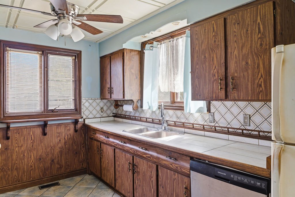 Rarely does a lot like this come to market. Situated on an oversized double-wide lot along a major arterial road, this property presents a compelling severance opportunity with the potential to sever and create an additional building lot. The land alone warrants serious attention. The house itself provides a non-conforming duplex/in-law suite configuration which is ideal for multi-generational living or supplemental rental income, and the 1.5-car detached garage with additional storage rounds out a practical and well-appointed package.
