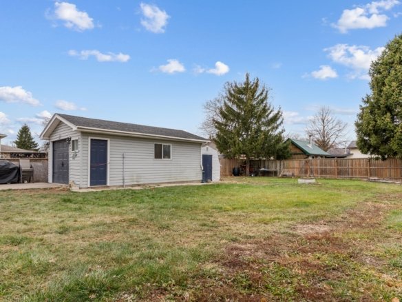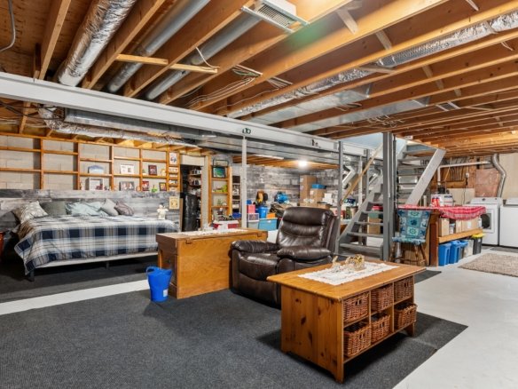 Welcome to 45 Stanton in the beautiful town of Essex! This spacious ranch is nestled in a quiet, friendly neighbourhood – perfect for anyone looking to downsize or just starting out. Step inside to find a bright, open living room featuring a cozy gas fireplace and updated flooring (2019). The large eat-in updated kitchen offers plenty of cupboard space and sliding glass doors that open to an oversized lot with a tree-lined backyard – ideal for relaxing or entertaining.